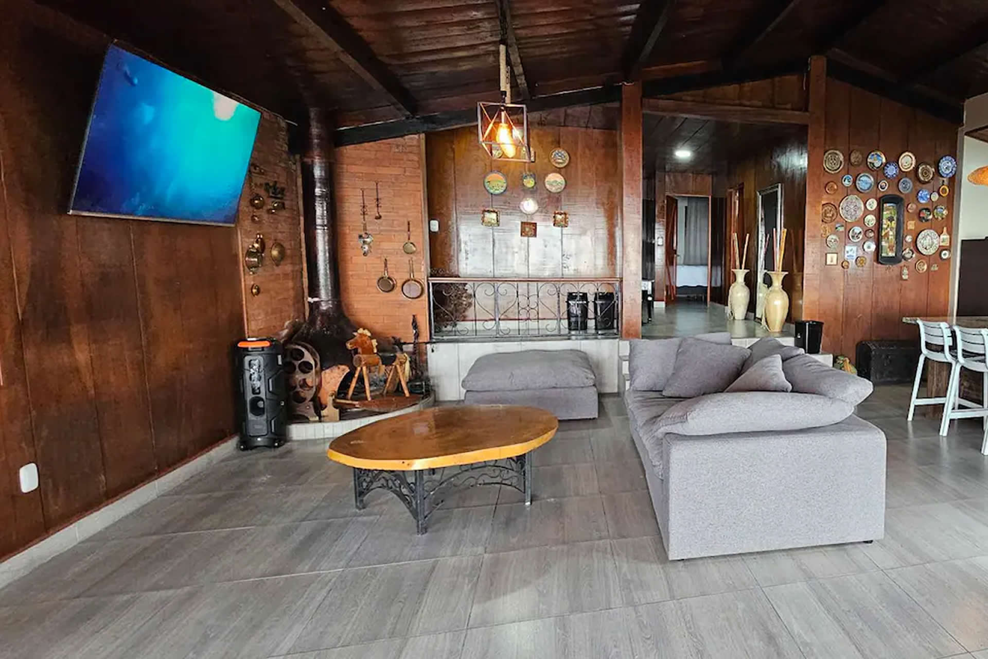 Ven a disfrutar y relajarte en esta hermosa y única cabaña con las mejores vistas de la ciudad, con capacidad para 10 personas. La cabaña tiene jacuzzi y parrilla de barbacoa para disfrutar de reuniones con familiares y amigos. Este lugar tiene un buen clima, muchas habitaciones espaciosas para descansar, la ciudad está a solo 20 minutos y los mejores restaurantes disponibles a 5 minutos. Todo lo que necesitas para disfrutar de tu estancia, duchas de agua caliente, nevera, microondas, cocina totalmente equipada, TV inteligente, wifi, ventiladores, parrilla de gas, chimenea.