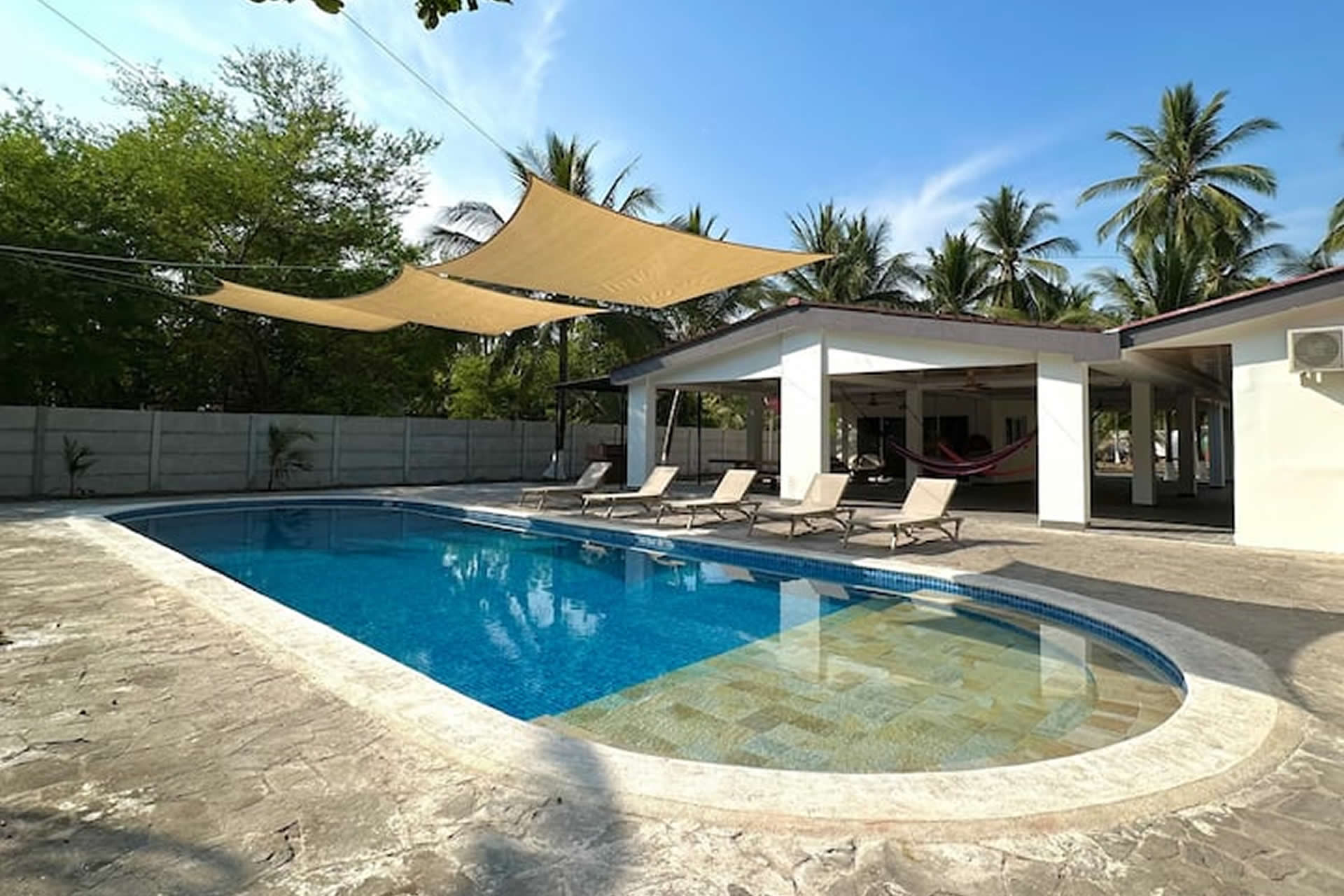 Nuestra piscina es el corazón del rancho, un oasis refrescante donde el mar y la comodidad se encuentran. Con un diseño amplio y elegante, es el lugar perfecto para relajarse bajo el sol o disfrutar de una noche estrellada. El agua cristalina invita a sumergirse y olvidar el mundo por un instante. Para mayor comodidad, ofrecemos espacios sombreados para descansar después de un baño revitalizante. Ya sea para un día de tranquilidad, una reunión entre amigos o un momento especial al atardecer, nuestra piscina es el lugar perfecto para disfrutar del paraíso.