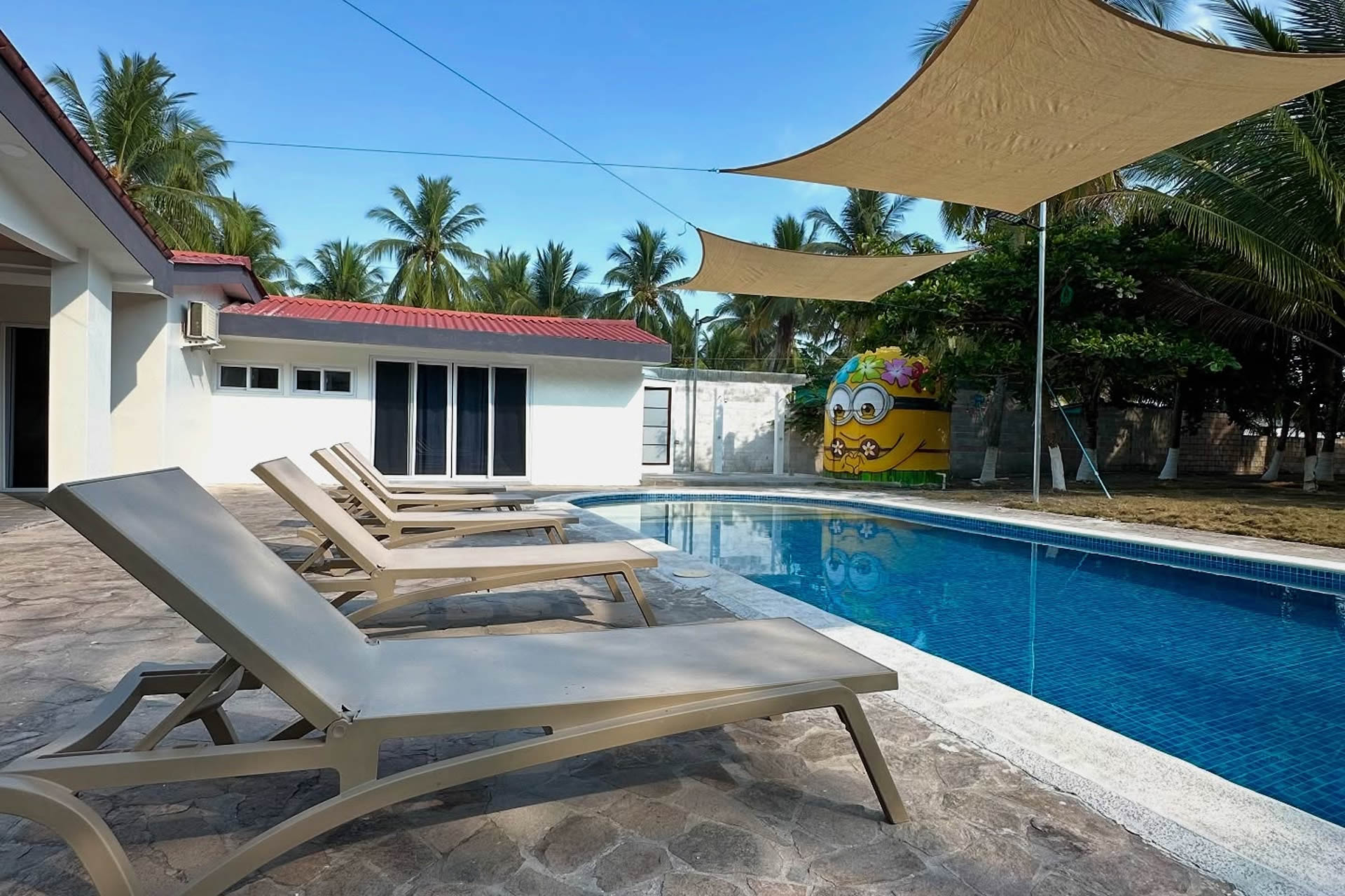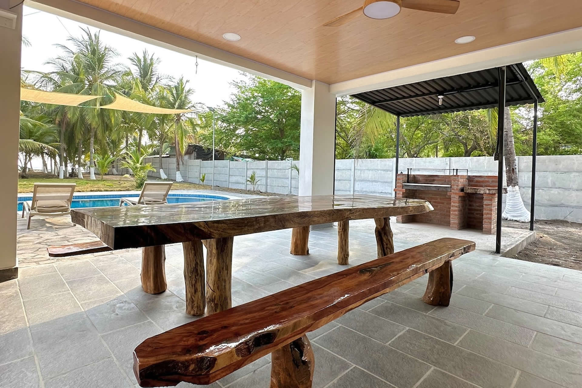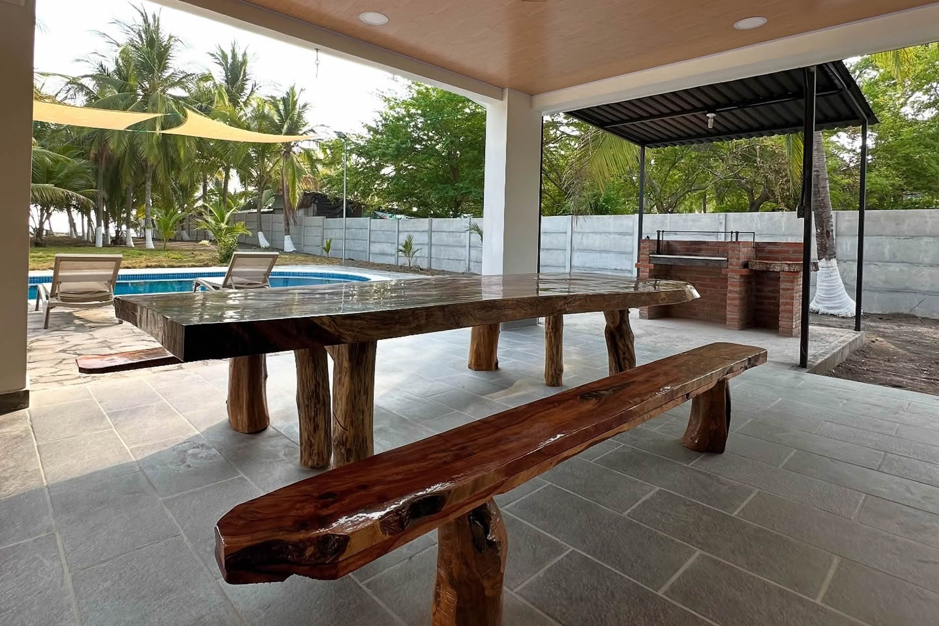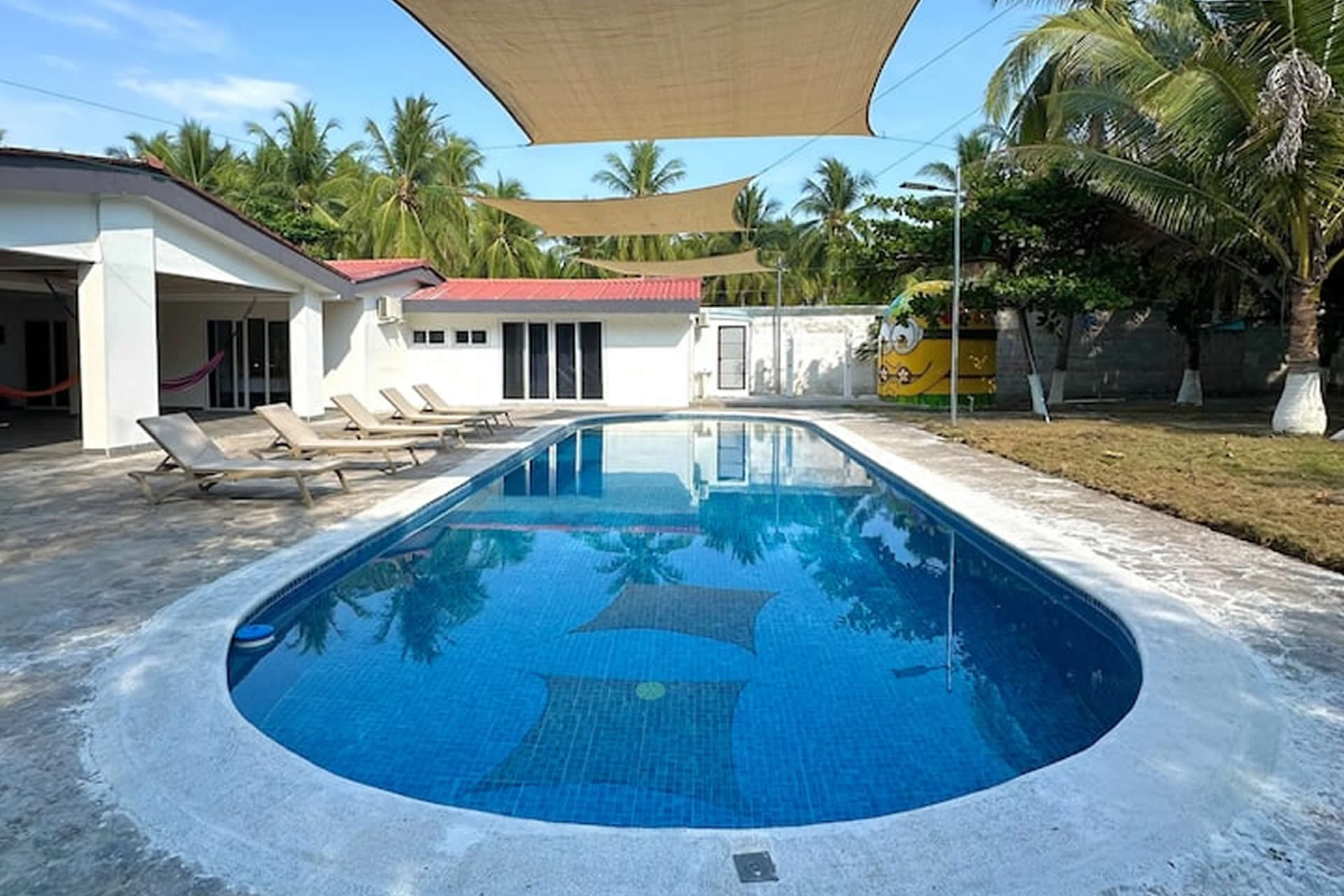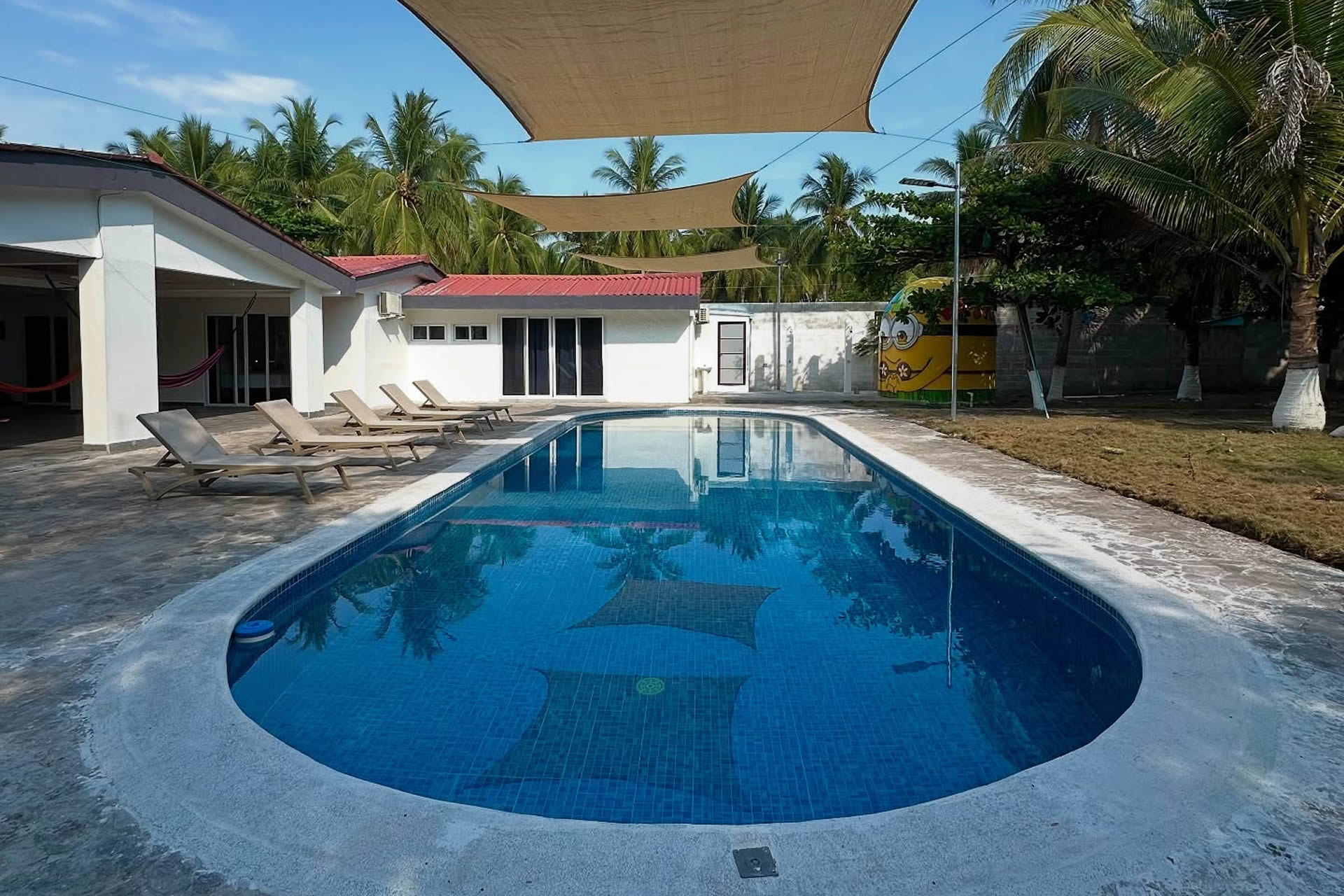 Nuestra piscina es el corazón del rancho, un oasis refrescante donde el mar y la comodidad se encuentran. Con un diseño amplio y elegante, es el lugar perfecto para relajarse bajo el sol o disfrutar de una noche estrellada. El agua cristalina invita a sumergirse y olvidar el mundo por un instante. Para mayor comodidad, ofrecemos espacios sombreados para descansar después de un baño revitalizante. Ya sea para un día de tranquilidad, una reunión entre amigos o un momento especial al atardecer, nuestra piscina es el lugar perfecto para disfrutar del paraíso.