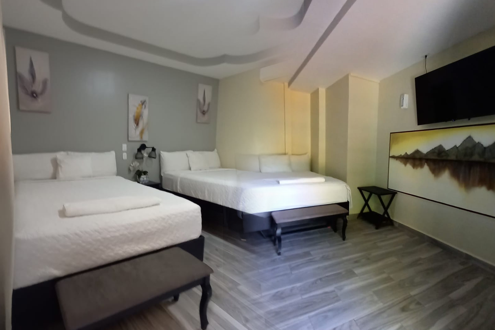 Nuestra habitación triple es el lugar perfecto para grupos o familias que deseen disfrutar de una estancia cómoda y relajante. Diseñada con el máximo confort en mente, esta amplia habitación ofrece todo lo necesario para garantizar una estancia placentera. Cuenta con espacio suficiente para acomodarte ya sea que estés viajando con amigos o con tus seres queridos, todos encontrarán su espacio personal sin comprometer la comodidad.